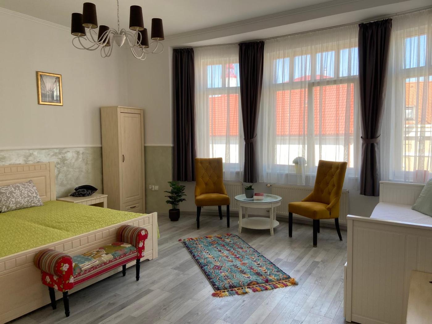 Deluxe Room. The double room has a private bathroom, air conditioning, a tea and coffee maker, as well as a seating area with a flat-screen TV. The double room features a wardrobe, parquet floors, heating, a TV, as well as city views. The unit has 1 bed. ;